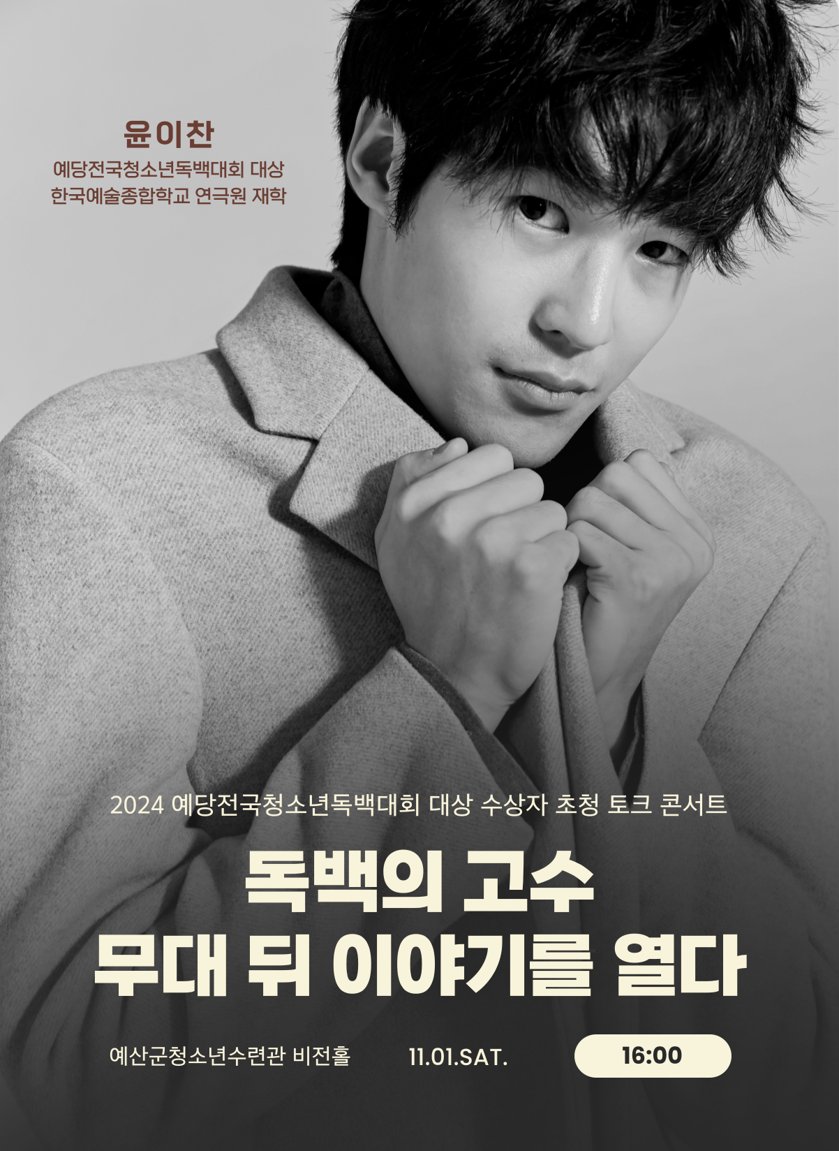 [16:00 ~ 16:50] 심사위원 최종 심사 / 선배 토크 콘서트 : 작년 독백대회 수상자 윤이찬 (게시글 하단 포스터 참조)